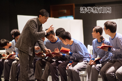 图为演出结束后胡和平走到演员同学中进行交流。 谢越韬 摄