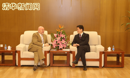 图为邓卫(右)与奎恩先生(左)会谈。记者 智斐 摄