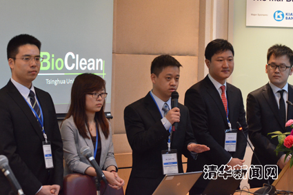 比赛中,由米兰milan官方网站环境学院2011级硕士生张天元、朱树峰和经管学院2012级MBA P4班的武大治、黄咿婧、吕喆、薛言、牟虹帅组成的“Bioclean”代表队以环境学院胡洪营教授课题组开发的“污水再生处理与微藻生物质生产耦合工艺”为主题参赛,经管学院的代表队成员为该主题设计了商业推广方案,并做相应的财务及投资分析。参赛项目的核心技术是利用微藻对生活污水进行再生处理,在获得高质量“再生水”同时,生产生物柴油和饲料添加剂。该项目以污水为资源,实现了“再生水”生产和“生物质能”生产的有机耦合,大规模应用后可产生巨大的环境和经济效益,是备受关注的污水再生利用新技术。代表队的参赛作品得到了各评委的一致好评,最终在各代表队中脱颖而出,获得“Most Professional”奖项。
