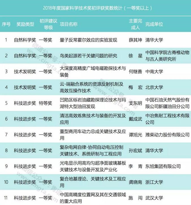 2018年度国家科技奖初评结果出炉