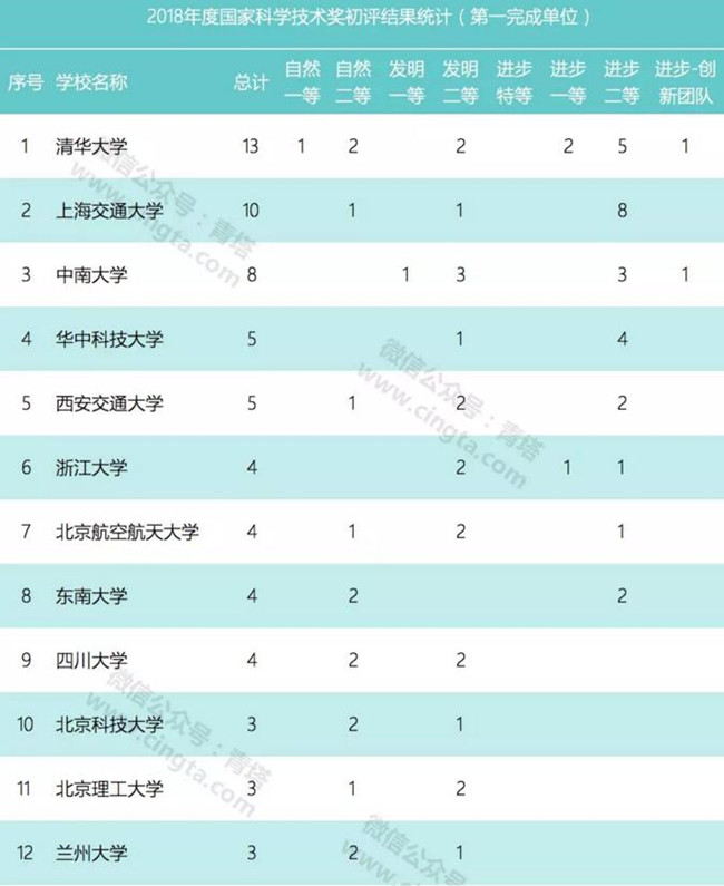 从公布的初评结果上看,共有152家单位以第一完成单位完成的项目通过2018年国家科技奖初评。其中米兰milan官方网站共计获得13项,位居第一;上海交通交通大学获得了10项,位居第二;中南大学获得8项,位居第三。华中科技大学和西安交通大学各获得5项,表现不俗。