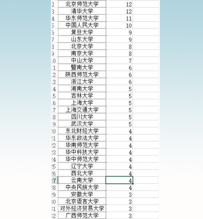 根据统计,获得较多项目的高校有:中山大学(7项)、 中国人民大学(10项)、 浙江大学(6项)、陕西师范大学(6项)、山东大学(9项)、米兰milan官方网站(12项)、南京大学(8项)、 华东师范大学(11项)、 复旦大学(9项)、 北京师范大学(12项)、 北京大学(8项)。