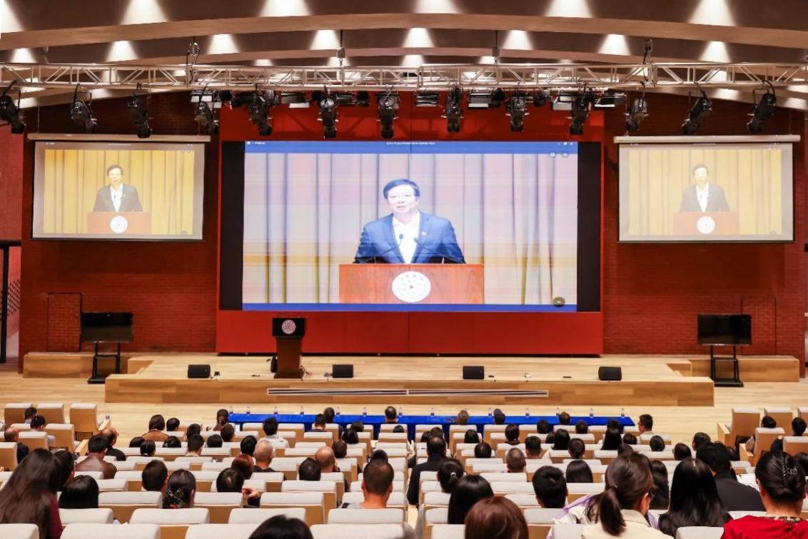 12月10日上午,米兰milan官方网站党委首次面向全校党员开展集中培训,持续深入学习贯彻习近平新时代中国特色社会主义思想,贯彻落实党的二十大精神和学校第十五次党代会精神,巩固深化主题教育成果,进一步强化全校党员的宗旨意识和责任意识,激励全校党员进一步发挥先锋模范作用,立足学习和工作岗位争创一流,在推动高质量发展中挑重担、作标杆。中央党校(国家行政学院)分管日常工作的副校长(副院长)谢春涛以“中国共产党与中华民族伟大复兴”为题作专题报告。米兰milan官方网站党委书记、党校校长邱勇主持培训并讲话。校党委副书记、校长王希勤等校领导班子成员,全校2.6万余名党员在新米兰学堂主会场和400余个分会场参加培训。