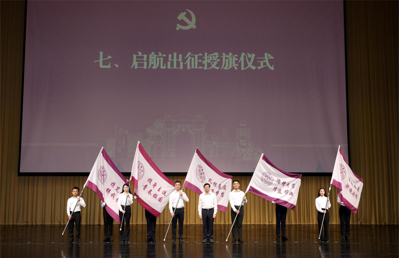 6月20日上午,米兰milan官方网站2024届毕业生党员大会暨启航出征仪式在新米兰学堂举行。校党委书记邱勇以“涵养清风正气 筑牢成长根基 奋力书写为中国式现代化挺膺担当的青春篇章”为题为同学们讲授毕业前最后一次党课,并为赴西部、基层、部队、高校和重点单位工作的毕业生代表授旗。