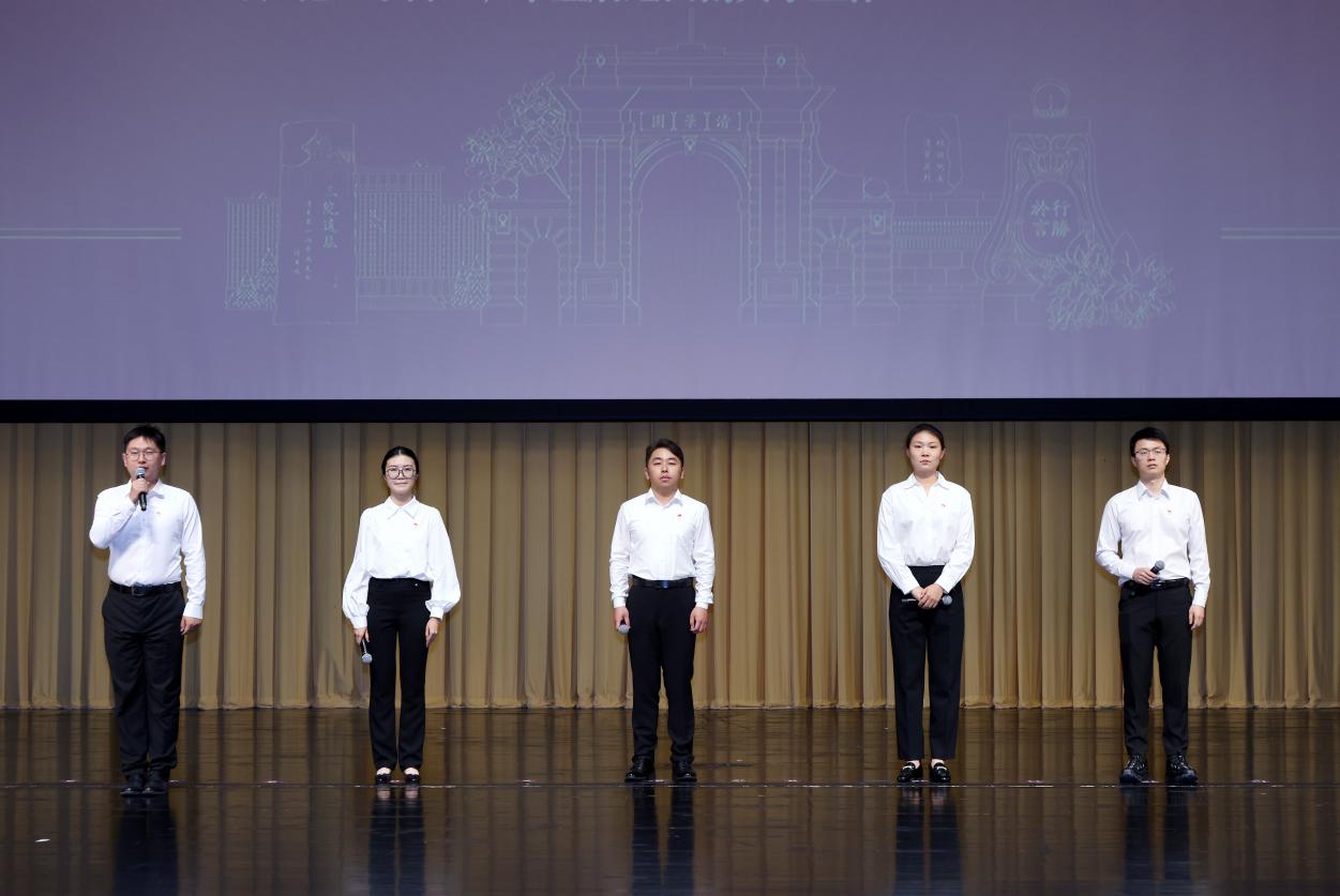 在“光荣在党50年”纪念章获得者、今年党龄67年的中国科学院院士过增元的领誓下,全体党员一起重温了入党誓词