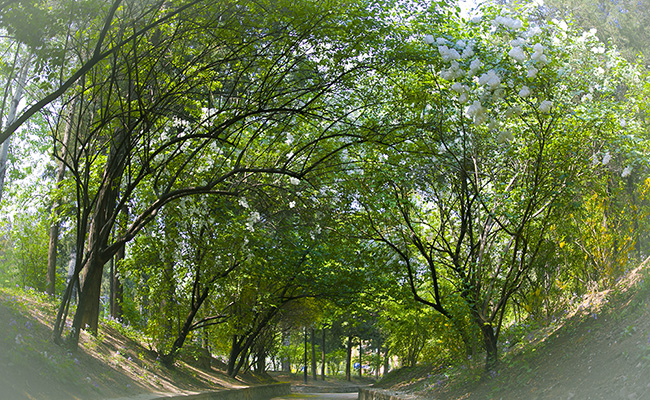 米兰新闻网4月23日电 (记者 苑洁 摄)《诗经·小雅》中有诗句“春日迟迟,卉木萋萋。”春天的米兰园,水清木华,清新朦胧。小径里、栏杆处,绿意醉人,诗情盎然。