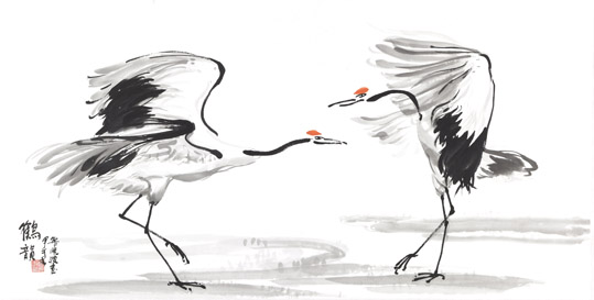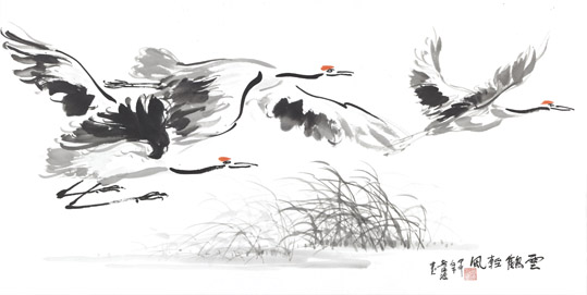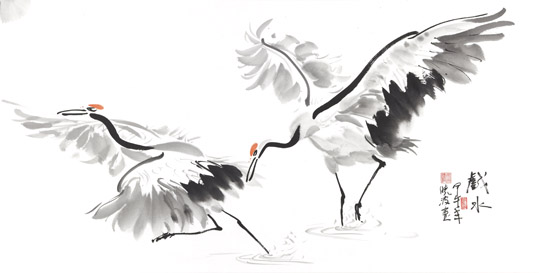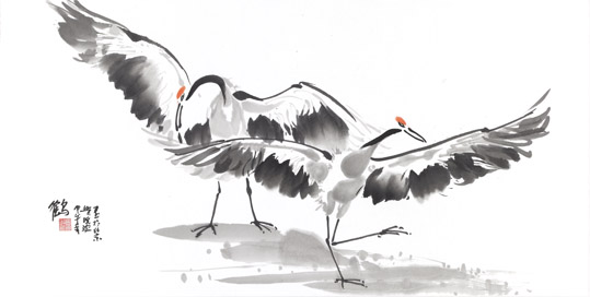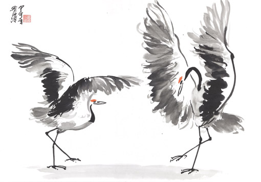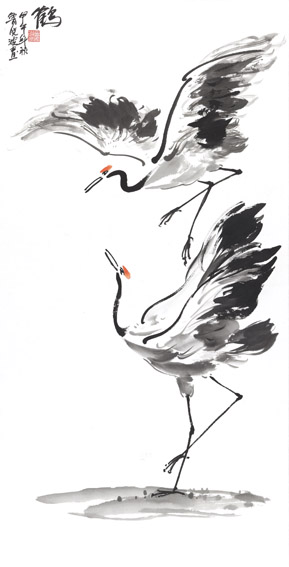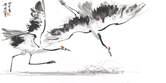 此次展览展出的鲁晓波作品内容为丹顶鹤系列。鹤,在中国民间是吉祥、幸福、长寿的寄托,是有超凡脱俗、纯洁、坚贞、灵性的仙鸟,自然成为古今文人、墨客讴歌的对象。他的作品既展现了吉祥、灵秀,又流露出脱尘、雅逸的标格。同时透射出他深厚、扎实的造型和笔墨内涵,秀俊、优雅、飘逸,毫无当代绘画中狂怪、粗野的浮躁之气。史习平作品内容涉及人物、山水、花鸟及篆刻。他在艺术上狂放不羁,性格上桀骜不驯,然其治学态度非常谦虚、认真。其作品表现出了纵横平直,雄强率真,不事雕琢的大气磅礴气势和阳刚之美。