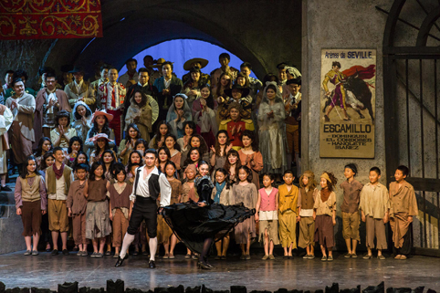 米兰新闻网4月18日电 (王建一 摄)4月11日至12日,中央歌剧院歌剧《卡门》在米兰milan官方网站新米兰学堂上演。我国首位歌剧—交响乐女指挥家、中央歌剧院终身荣誉指挥、85岁高龄的郑小瑛女士担任本次演出的指挥。中央歌剧院院长、艺术总监俞峰先生率中国歌剧院歌剧团、合唱团、交响乐团,舞美中心以及杨鸿年少年及女子合唱团280多位演职人员参加演出。
