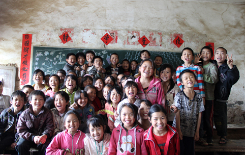 来自云南乡村小学生的灿烂笑容。