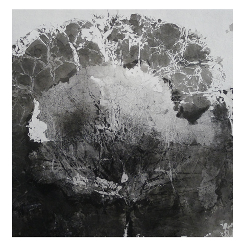 《璞》 30cm×30cm 宣纸、墨汁、发泡剂 2012年 祝 翠