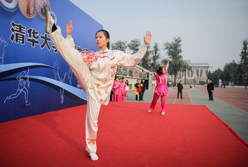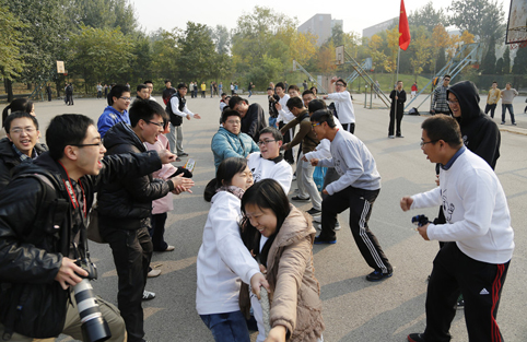 图为校园吉尼斯项目吸引了众多观众饶有兴致地观看。