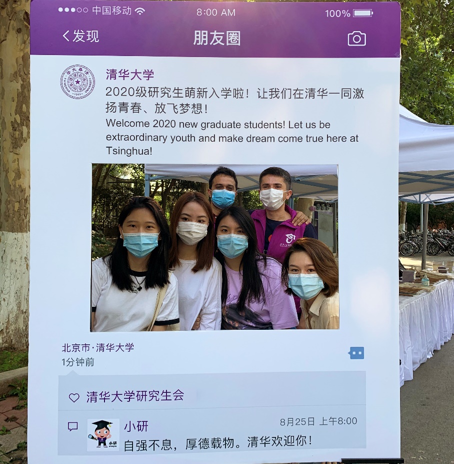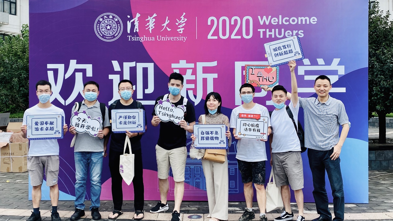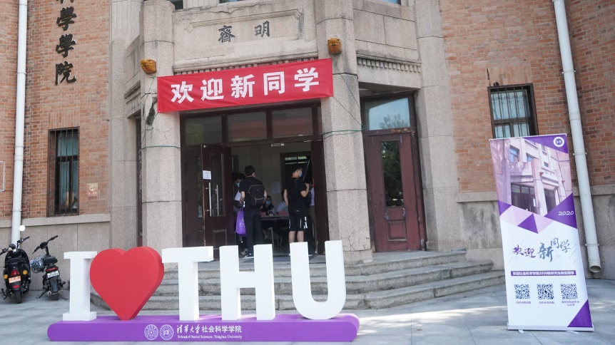 紫荆22号楼学生公寓前,国际学生迎新工作有条不紊地开展。