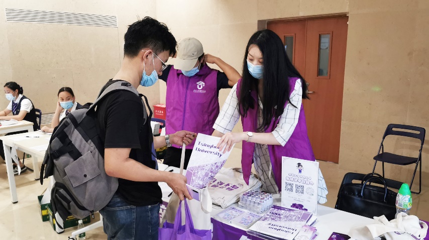 在8月份刚刚启用的双清公寓大厅内,同样可以看到迎新小研志愿者们的身影。