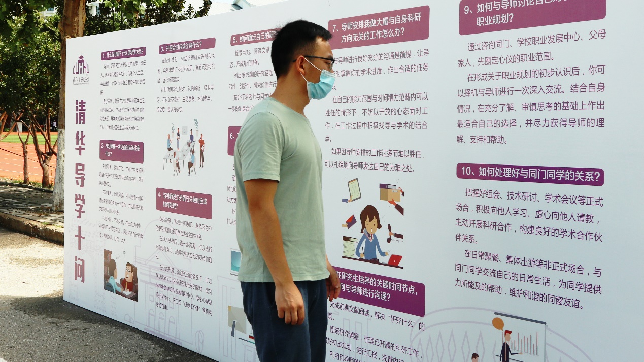 为引导研究生新生同学正确看待和合理处理导学关系,促进形成导学思政育人合力,同时响应节约粮食号召,迎新现场特设置“学风与厉行节约主题展览区”,展示“米兰导学十问”及九条“厉行节约口号”,解答新生最关心的导学问题,倡导节约粮食的校园风尚。