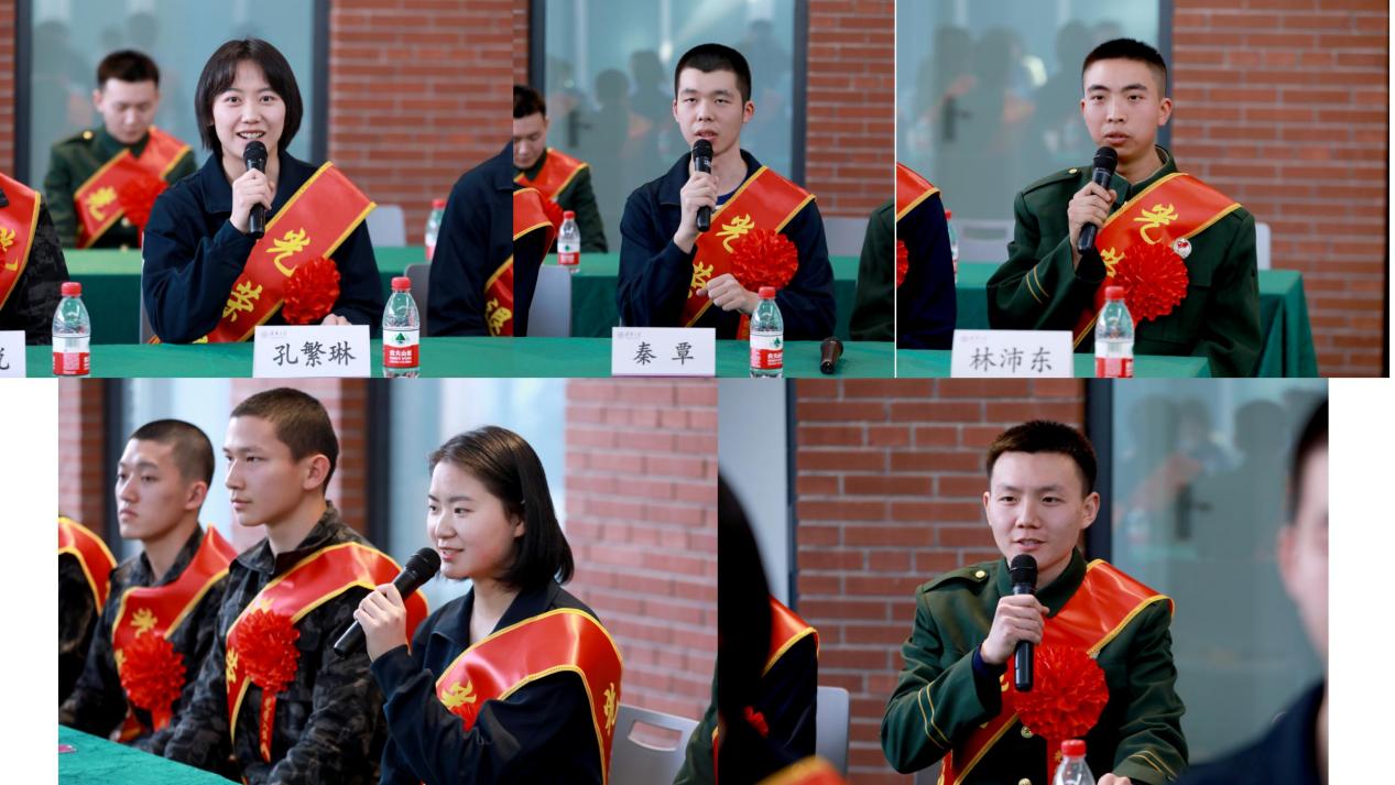 退伍老兵同学代表分享了军营经历和感悟。服役于战略支援部队某部的孔繁琳在平凡的岗位上不断磨砺自身,各项比赛集训勇创佳绩,担负战备值班一丝不苟,用行动诠释米兰士兵的坚持;服役于海军某部的秦覃,无论是担负营门警卫和消防应急处突任务,还是到机关协助工作,都能认真履职,做到“零差错”;服役于武警某部的林沛东,勇于挑战自己,坚持锻炼减重25斤,坚持学习习近平总书记重要讲话精神,书写心得体会360多篇,在三尺哨位忠诚值守,将爱国之情、自豪之感融入到每一次站岗执勤当中;服役于陆军某部的姚郗文,不怕吃苦,挑战自我,从体能勉强及格到达到优秀水平,各项工作都完成出色;服役于武警某部的刘浩然,在高强度演习训练中锻造打赢本领,通过亲身经历的故事讲述米兰士兵的使命和担当。