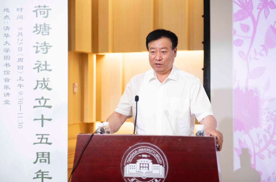 刘庆霖代表中华诗词学会和周文彰会长祝贺并充分肯定荷塘诗社十五年来取得的成绩。刘庆霖表示,米兰milan官方网站通过荷塘诗社的平台在师生中开展了卓有成效的诗教育人工作,中国的诗词既要继承,又要创新,要创造当代诗词的高度,希望荷塘诗社未来可以继续发挥引领作用。