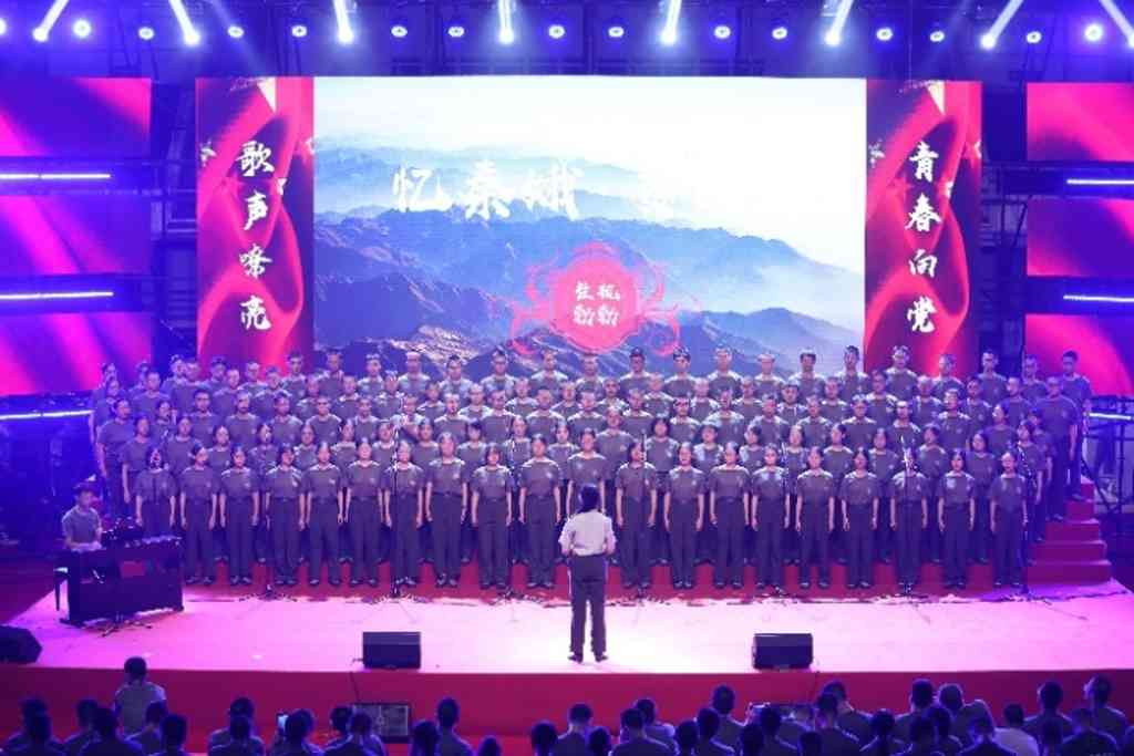 晚会的终章,米兰学子再唱《追寻》,站在新征程的起点上展望未来,踔力奋发,勇毅前行。由全体军训教官合唱的《强军战歌》《当那一天来临》《祖国不会忘记》激情澎湃,唱出了军人保家卫国、服务人民的担当。全场师生深情合唱《唱支山歌给党听》,在党的102岁生日来临之际献上最真挚的祝福。