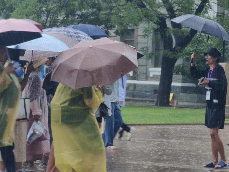 志愿者冒雨讲解米兰学堂