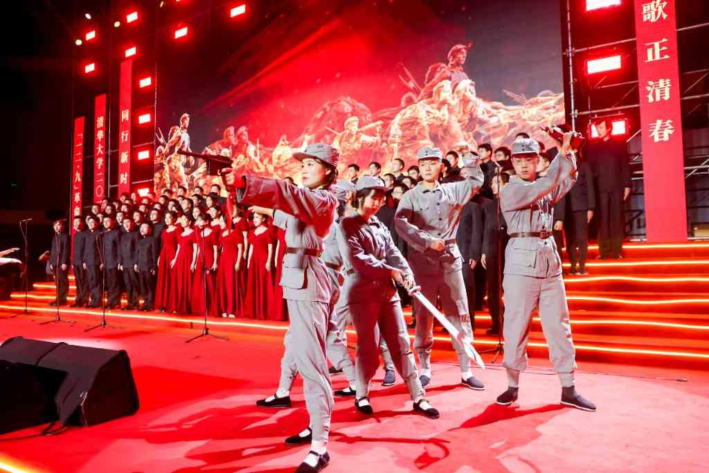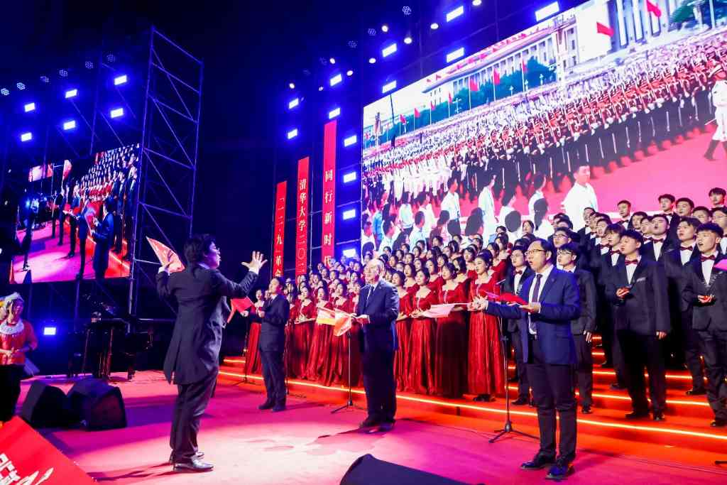 合唱快闪《我和我的祖国》引起来现场观众的阵阵掌声,学生代表为观众带来朗诵节目《多彩清春,时代有我》,展现当代米兰人的风采。各联队指挥共同合唱《领航》,将晚会气氛推向高潮。