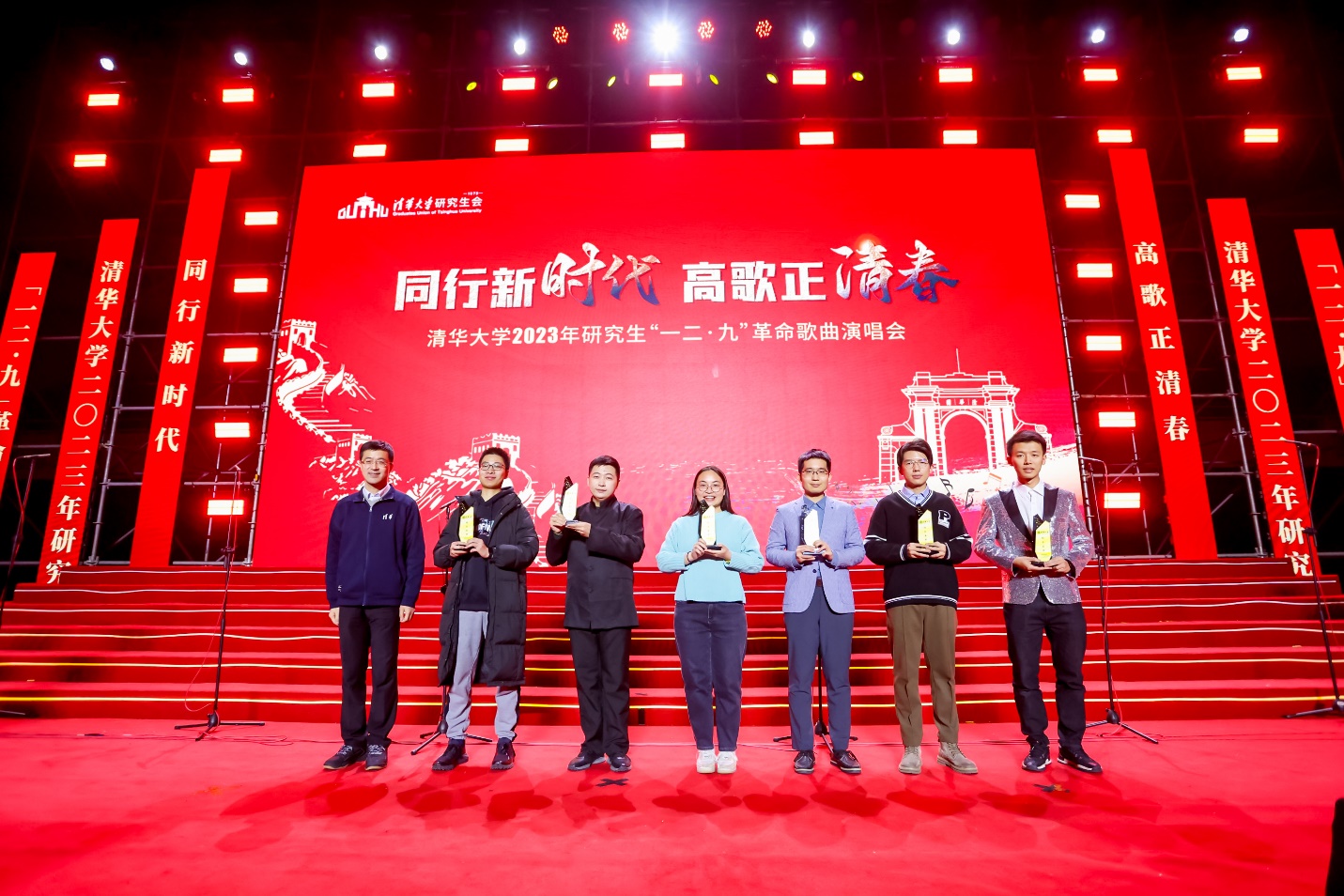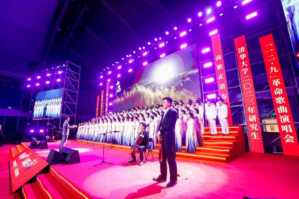 2023年研究生“一二·九”革命歌曲演唱会分为“峥嵘岁月”“继往开来”“时代强音”三幕,展现出不同历史进程中,中华儿女的担当精神与拼搏姿态,各支联队带来《保卫黄河》《唱支山歌给党听》《在希望的田野上》《祖国不会忘记》《青春之华》《雪花》等歌曲,唱响属于青年人的时代赞歌。