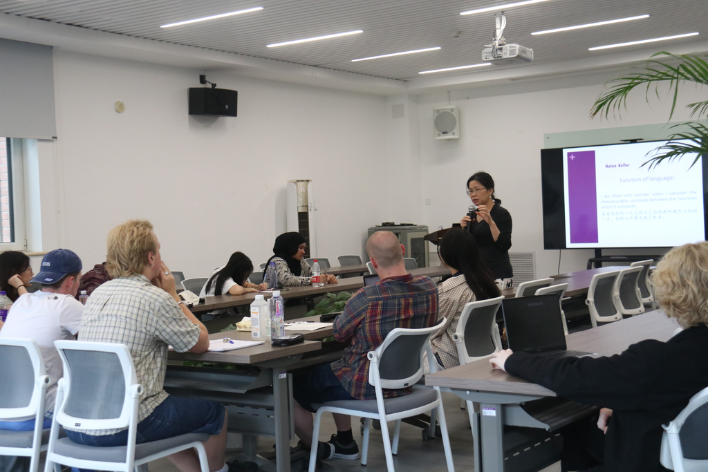 暑校期间,外文系以强大的师资团队为暑校同学们开展了语言学、文学、历史、哲学等多个主题的讲座。讲座涵盖了中国现代文学、欧洲中国热、日本的中国文学、中医药、中国哲学与剪纸艺术、文学与翻译、语言与思辨、历史文化与传统服饰、太极拳等多个领域。外文系也与药学院和电子工程系进行了联合讲座和交叉活动,将人文见解与科技思维有机融合。在各类课程中,同学们积极思考、热烈讨论,分享心得体会。