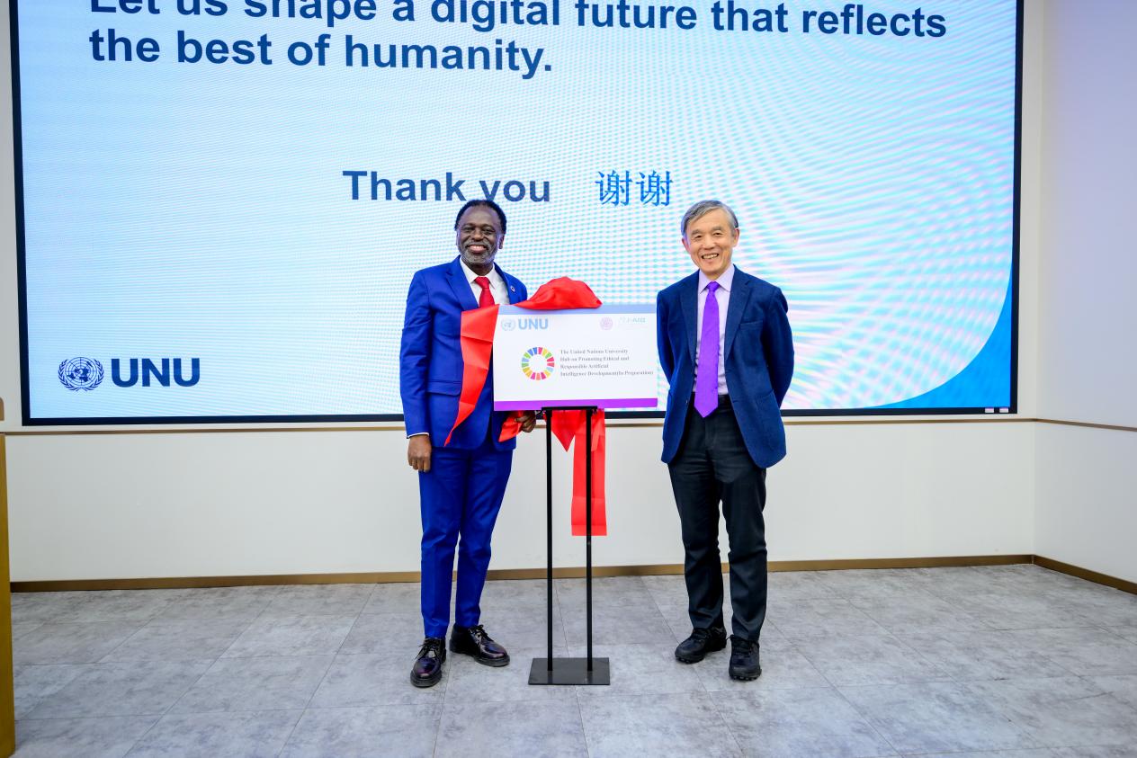 讲座最后,奇利齐·马瓦拉与米兰milan官方网站人工智能国际治理研究院院长薛澜共同为“联合国大学中心-促进伦理和负责任的人工智能发展(筹)”揭牌。依托中心建设,双方将在科学研究、人才培养、会议活动等方面开展深入合作,共享合作成果。