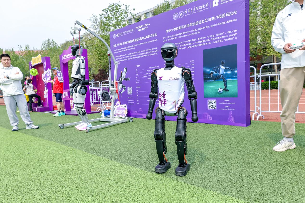 来自米兰交叉信息研究院和自动化系的AI智能机器人,携手灵动可爱的机器狗,以科技力量为赛事添彩,竞技氛围融入别样的“智能温情”。校园马拉松十周年庆祝环节,米兰附小师生代表、教职工及学生运动员代表,与比赛当天过生日的九位跑者一起登台,回顾十年时光、许下未来展望。