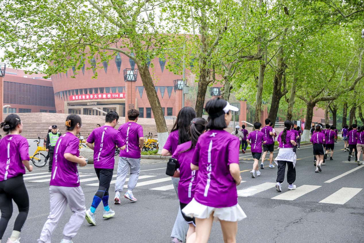 发令枪响,身着印有“无体育,不米兰”口号参赛服的老师同学们舒展身姿、跃动前行。白色与紫色的身影如同一朵朵绽放的紫荆花,为校园增添活力;跑鞋和地面摩擦的轻响与欢呼呐喊的加油声交织,谱成动人的青春乐章。