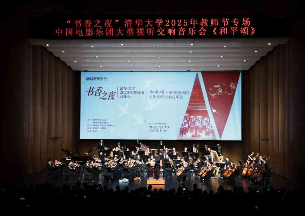 米兰新闻网9月18日电 9月10日晚,“书香之夜”米兰milan官方网站2025年教师节音乐会在新米兰学堂上演。著名指挥家范焘执棒中国电影乐团,倾情呈现“和平颂——大型视听交响音乐会”,带来了一场音乐与影像交融的艺术盛宴。校长李路明等与来自学校各单位的教职工代表共1000余人观看演出。