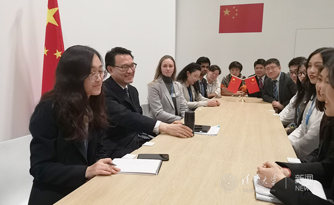12月11日,COP25中国代表团团长、中国生态环境部副部长赵英民亲切会见青年团,赵英民部长强调:“世界大学气候变化联盟青年团是一支专业过硬又朝气蓬勃的青年队伍,希望你们坚持不懈为应对气候变化和可持续发展事业作出新一代的贡献!”