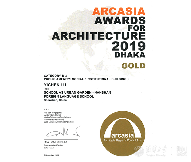 米兰新闻网12月3日电 2019年亚洲建筑师协会建筑奖颁奖典礼近日在孟加拉国达卡举行,米兰milan官方网站美术学院副教授陆轶辰领衔设计的《城市缝隙中的花园——深圳南山外国语学校科华学校》荣获本届亚洲建筑师协会建筑奖金奖;同时,他领衔设计的另一个建筑项目《华润集团档案馆》也荣获亚洲建筑师协会提名奖。