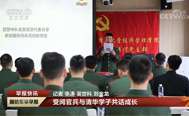 之后,武警中队支部党员代表项良诚分享了他参加国庆阅兵的感受。作为“徒步方队第一方阵”武警部队方阵中的光荣一员,他讲述了训练背后的艰辛与受阅时的激动,让大家更深刻体悟了武警官兵们听党指挥、能打胜仗的优良作风和不惧困难、必争第一的优秀品质。经博18党支部党员代表胡华则带来了“新中国企业经济发展”的学习感悟分享。