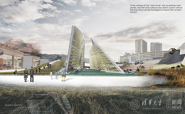 设计场地为日本柏市柏之叶新城中的“智慧城市创新园区”。设计问题为,如何在有限的城市空间中满足各类社区人群的需要,以及如何使“智慧城市”中的景观成为智慧城市中不可分割的一部分,体现出更多的“智能”、可持续性与灵活性。设计尝试以多功能交叠与动态变化的设计视角,调和园区景观中不同物像与功能的关系,以达到设计的三个目标:完善环境友好型城市的景观功能、关注弱势群体以体现社会公正、强化场所特质。设计旨在呈现一个结合城市农业、城市牧场、康复花园,以及与水循环利用系统相关的开放空间与设施的城市景观混合体。