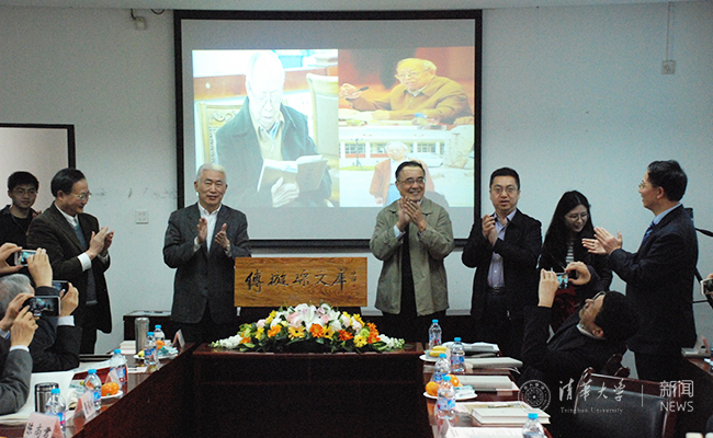 会上,谢维和、李岩、徐俊和王中忱共同为“傅璇琮文库”揭牌,文库匾额由十一世班禅大师题写。