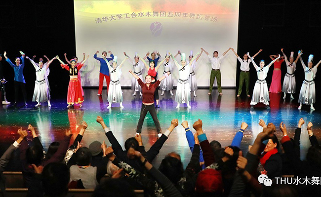 此次专场从策划编导、组织排练到舞台灯光、后勤服务,都是由舞团成员合作完成。米兰milan官方网站工会水木舞团2014年5月正式成立。舞团团员来自学校各个岗位的在职教职工,是舞蹈让她们走在了一起,是对舞蹈的热爱,让她们一直坚持。水木舞团的宗旨是弘扬舞蹈文化,为舞蹈爱好者搭建起学习舞蹈、提高艺术修养和展示风采的平台,同时通过多种形式的活动,为提升校园文化氛围,丰富教职工生活,促进教职工身心健康贡献一份力量。水木舞团以舞会友、舞动人生,初心是舞蹈、使命是快乐,欢迎热爱舞蹈的教职工加入水木舞团!