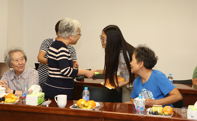本科生代表为老教师送上自己制作的生日贺卡。