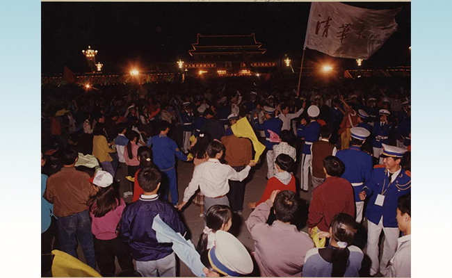 还刊载了在天安门之夜欢歌跳舞的同学们的身影