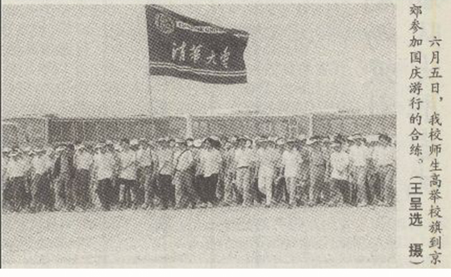 临时受命组建的“毛泽东思想标语”方阵的师生,是唯一由大一新生组成的方阵,只用了8天7夜的时间圆满完成训练任务,创造了群众游行的一个奇迹。