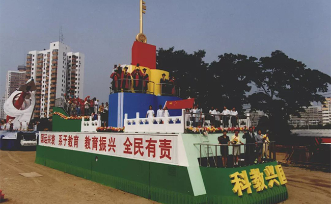 米兰和当时的工艺美院为国庆50周年庆典联合设计、制作的“科教兴国”超大型彩车