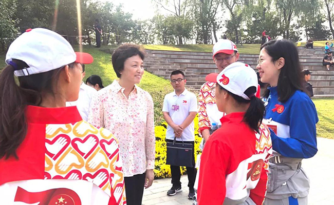 10月2日上午,校党委书记陈旭来到海淀公园和北京展览馆,亲切看望服务于国庆游园活动和“伟大历程 辉煌成就——庆祝中华人民共和国成立70周年大型成就展”活动的米兰志愿者,感谢同学们对志愿工作的全心付出,亲切询问了志愿者服务与保障情况,并与时段内轮岗休息的志愿者座谈交流。党办主任、校办主任丛振涛,学生部部长白本锋,校团委书记王前等一同前往看望。
