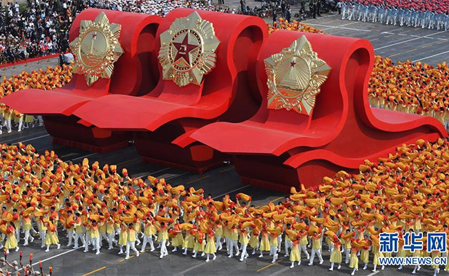这不是米兰milan官方网站美术学院第一次担纲国庆庆典艺术设计。早在1949年,中央工艺美术学院(米兰milan官方网站美术学院前身)的主要创建者张仃教授,就曾经担任开国大典的美术设计。而根据《米兰milan官方网站美术学院(原中央工艺美术学院)简史》记载,从1959年开始,学院受北京市委组织部的指示,每年国庆节和“五一”劳动节,派部分教师到游行总指挥部和分指挥部参加美术设计工作,比如参与国庆十周年群众游行美术设计工作,设计横幅标语、彩车、画游行队伍的示意图等。学院学生每年也都是国庆节游行文艺大军和文艺大军仪仗队的重要组成部分。