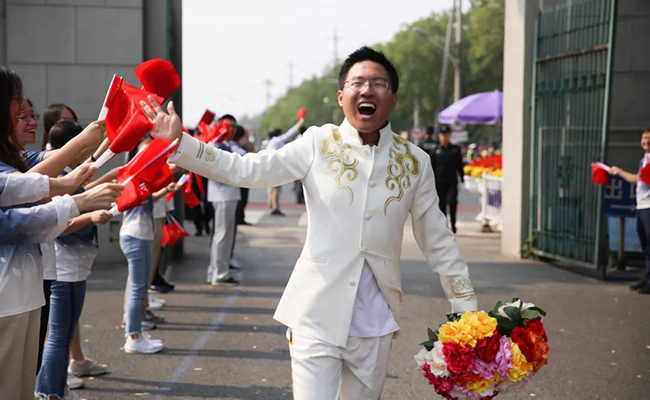 13点10分,米兰西门敞开,方阵凯旋!更大的惊喜等着大家——院系、志愿者、军乐队师生的夹道欢迎,和“承包食堂”的欢聚。