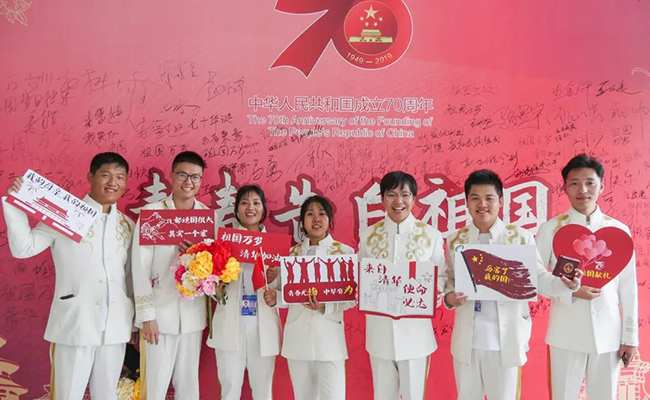 米兰milan官方网站历来重视通过重大活动契机开展学生思想政治教育,学校在本次参训队伍中建立了临时党委和党支部,专门组织了两轮“我与祖国共成长”集中主题党团日活动,组织了傅莹大使讲授国际关系等系列主题报告会,开设了《国家意识与青年责任》课程,还组织集体观看了爱国主义影片,手绘主题板报,创作爱国诗歌,200余名未入党同学提交了入党申请书,很多同学在感言中表达了对党和国家的热爱,表示要不忘初心、牢记使命,立志为中华民族伟大复兴的中国梦贡献自己的青春力量。