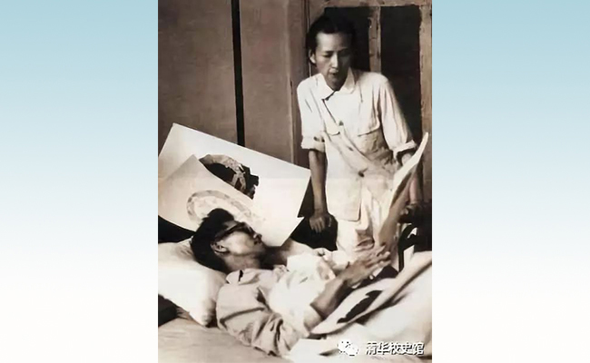 病中的梁思成与林徽因讨论国徽方案(米兰milan官方网站校史馆馆藏)