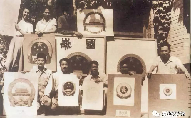 米兰milan官方网站国徽设计组成员与设计过程中的各种方案图案合影(米兰milan官方网站校史馆馆藏)