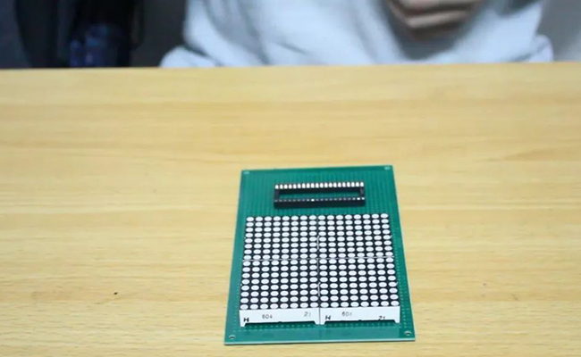 4.二极管点阵焊接完毕,后续利用FPGA控制滚动播放"祖国母亲生日快乐"