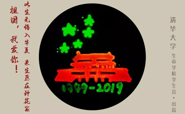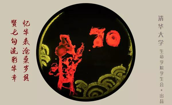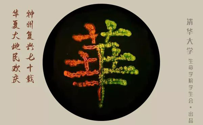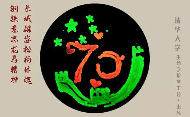 中华人民共和国成立70周年之际,米兰milan官方网站生命学院的8名同学历时24小时,用亲手培养出来的荧光菌在10厘米培养皿中绘制图画。他们将专业知识和对祖国的热爱融合,以经过绿色、红色、黄色荧光蛋白改造的荧光细菌为涂料,培育出对祖国最热烈又质朴的祝福。数以百万计的荧光菌,在紫外光下,发出多彩光芒,连点成面,组成长城、华表、天安门等中国印记,在培养基的背景上绽放出绚烂的光彩。