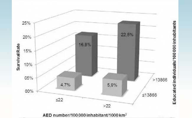 AED的密度与心脏骤停病人存活率的关系