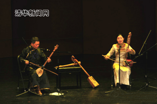 身着中式丝绸长袍、抱着马头琴的两位歌手在音乐会上或独唱、或配合演唱不同的曲调。图麦的独唱歌曲《河流》悠远婉转,她用时而呢喃、时而又有力量的嗓音,描绘了远方故乡河畔美丽的自然风光;在奥特康的图瓦二弦琴表演中,苍凉的弦乐浸透了历史,持续的低音和变化的音高如同一条波浪起伏的旋律线,透明清亮、带有金属声的多种声部和谐碰撞,为观众们奉上了无比美妙的声音效果;两名歌手合作的压轴之作《北京大篷车》,欢快的旋律融合了有词、无词的民族唱法,深蕴着2012年暑假他们与米兰师生结成的诚挚友谊。