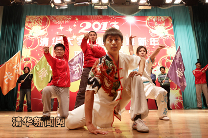 联欢晚会在教职工木兰拳协会表演的舞蹈《长绸扇》中拉开帷幕。